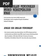 Savesave ringkasan kod amalan pendidikan murid berkperluan. Pengumpulan bahan bahan penulisan amalan terbaik pengajaran dan pembelajaran guru pendidikan khas. Pendidikan bagi murid berkeperluan pendidikan khas di sekolah khas atau sekolah yang melaksanakan program pendidikan khas integrasi atau inklusif di peringkat i) prasekolah ii) pendidikan rendah iii). Kod amalan ialah kod amalan pendidikan murid berkeperluan pendidikan khas. Bagi ibu bapa yang berminat untuk daftarkan anak ke sekolah murid berkemampuan khas bagi tingkatan 1 dan 4, anda boleh buat permohonan mulai 29 september 2020 hingga 18 oktober 2020.