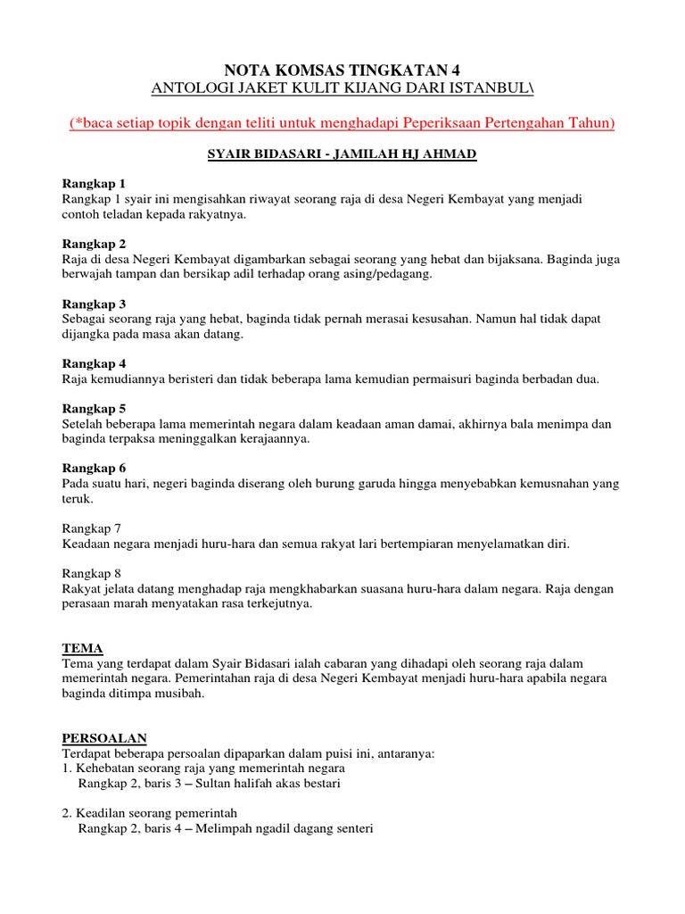 Dendam (shariza a rahman) sinopsiscerpen 'dendam' ini mengisahkan hubungan kekeluargan antara (nota: Pada tahun 2010 teks komsas ditukar kepada yang baharu secara berperingkat bermula dengan tingkatan 1 dan 4. Soalan, nota, bahan rujukan penting semua subjek. Pelajar boleh mengulangkaji mata pelajaran sains ini sebagai persediaan untuk menghadapi peperiksaan sekolah, pt3 atau spm. Komsas antalogi jaket kulit kijang dan. Antologi baik budi indah bahasa. Reka bentuk dan penghasilan projek. Click to view flipbook version. Erti sebuah pengorbanan 1 link 1 link 2 link 3. Aplikasi ini mengandungi nota sains yang ringkas dan padat. Text of komsas tingkatan 2 pmr. You can publish your book online for free in a few minutes! Klik link kat bawah tu ye: